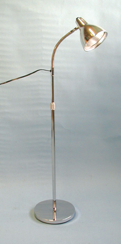 Chrome-Plated Base * Deluxe 3 Prong Plug *All Standard (Gooseneck) chrome exam lamp with a reinforced head and 7 foot cord * Deluxe (Swivel Head Goosneck) models feature a swivel mounted vented shade and a dimpled surface inner reflector that increases the intensity and uniformity of the light while preventing heat build-up * Heavy base – 6 Lbs. 10 5/8 Diameter chrome-plated * Height adjustment 34 1/2 to 53 1/2 * 12 flexible arm permits positioning in any direction * Uses 60 Watt bulb (not included) * UL and CUL listed *