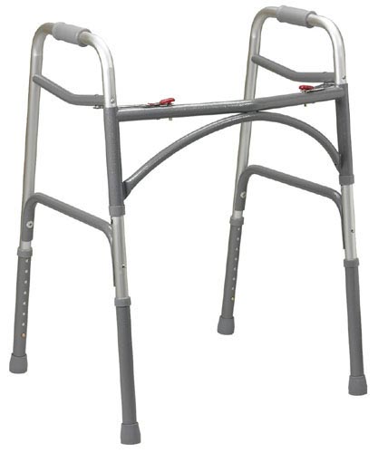 Walker without wheels * For adult Bariatric use * Wider and deeper frame design accommodates individuals up to 500 lbs * Vinyl contoured hand grip * Precision design provides additional strength while adding minimal weight * Includes rear glide caps (item #1085B) allowing use on all surfaces.* Limited Lifetime Warranty * Width (Inside Hand Grips) 20 * Overall width 24 * Height adjusts from 32 – 39 * HCPCS Suggested Code: E0148
