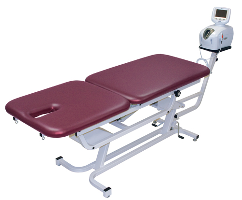 The TTET-200 is a two-section 71 cm wide table with an adjustable height from 48 cm – 96 cm (19 in – 38 in) and a working load of 181 kg (400 lbs) * Retractable casters and Footswitch are included with this model * Burgundy * Two sections * Friction-free gliding lumbar section * Traction unit pedestal 400 lb (181 kg) lifting capacity